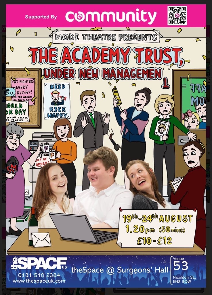 Mode Theatre’s latest comedy ‘The Academy Trust: Under New Management’ takes a humorous look at the challenges facing teachers in academy chains. Written and performed by real teachers, the show casts a satirical glance at the absurdities of school life, from bureaucratic nightmares to ever-looming Ofsted inspections.