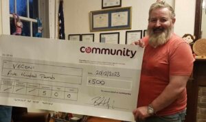 The Branch Chair of Community’s Northern Ireland Justice and Custodial group has presented a cheque for £500 to Dr David Keenan, founding member of counselling charity Veconi.